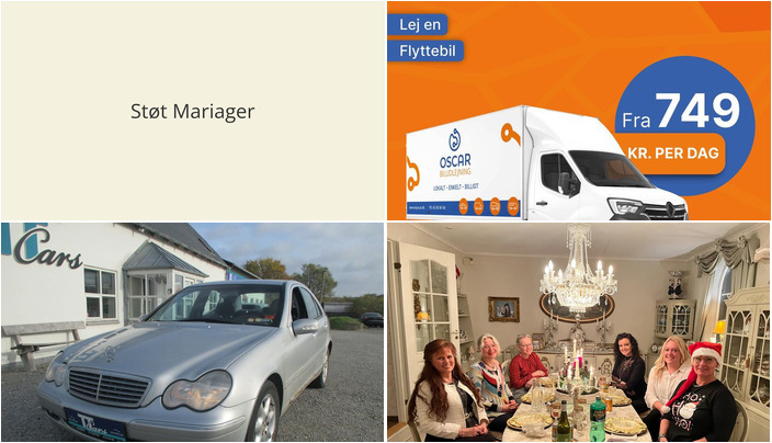 TT CARS ApS fejrer søndag med en Mercedes-Benz C180 og inviterer til prøveture. Oscar Biludlejning opfordrer til at booke lejebil i god tid til juletiden og informerer om et reduceret depositum. Smykkedesigner Helga Winther deler glæden fra sin julefrokost med julemad fra Dalbyover Kro og fine gaver. For yderligere detaljer, kan du læse de oprindelige opslag.
