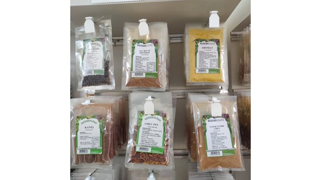 Krydderier fra Hedebogård, 120 forskellige, kun 13 kr.